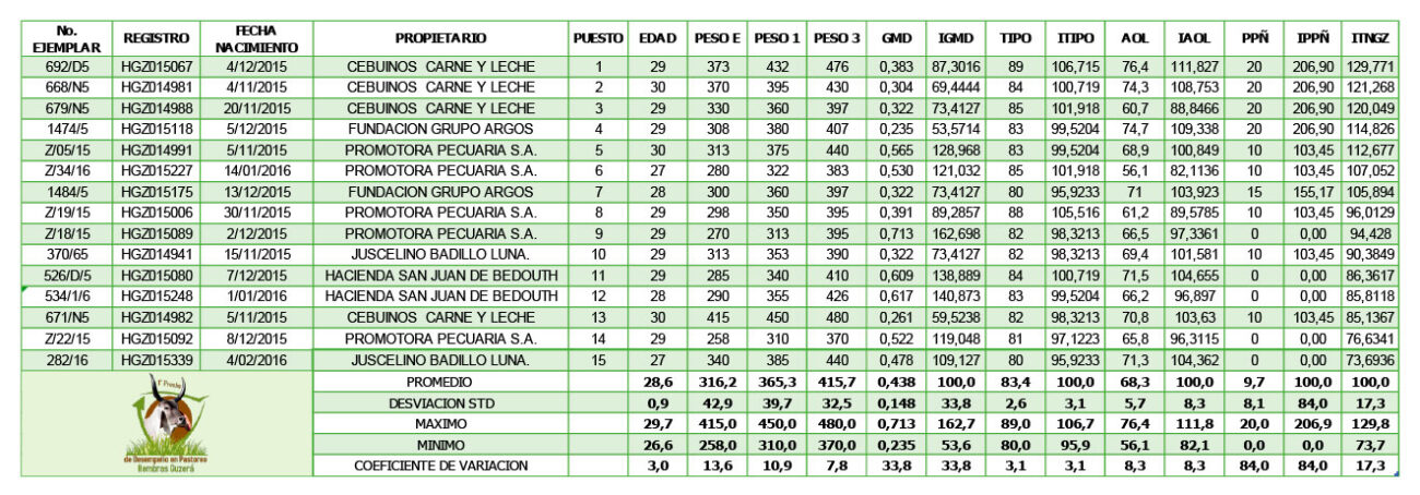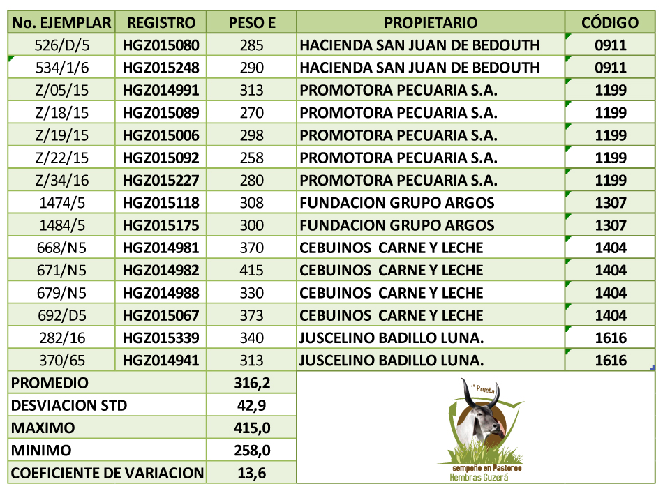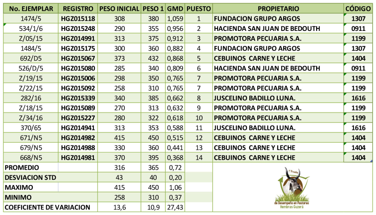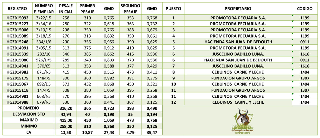 1ª Prueba de Desempeño en Pastoreo Hembras Guzerá
