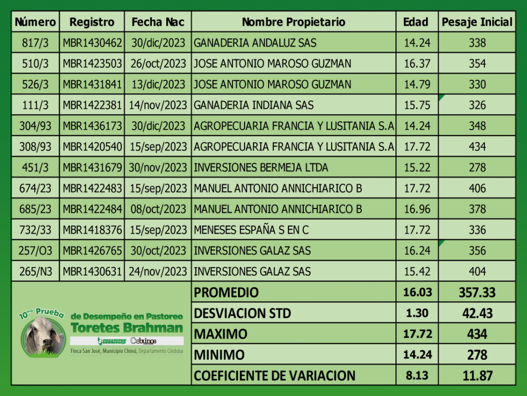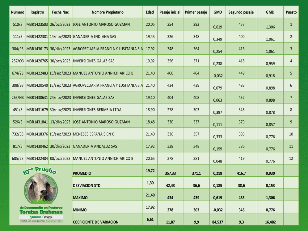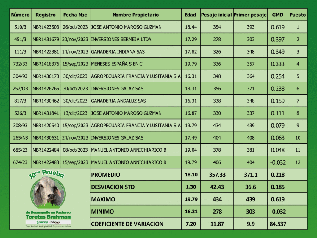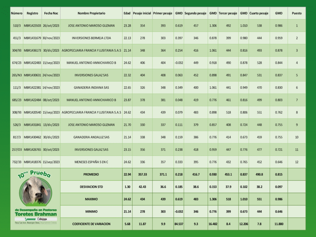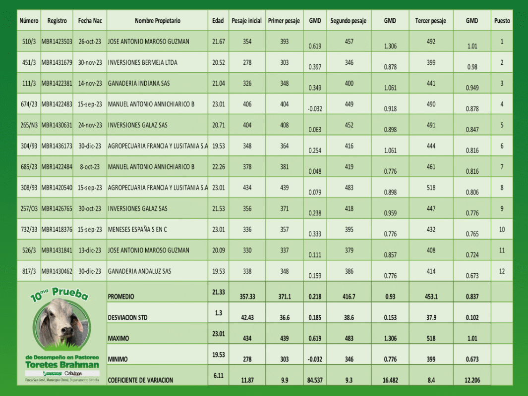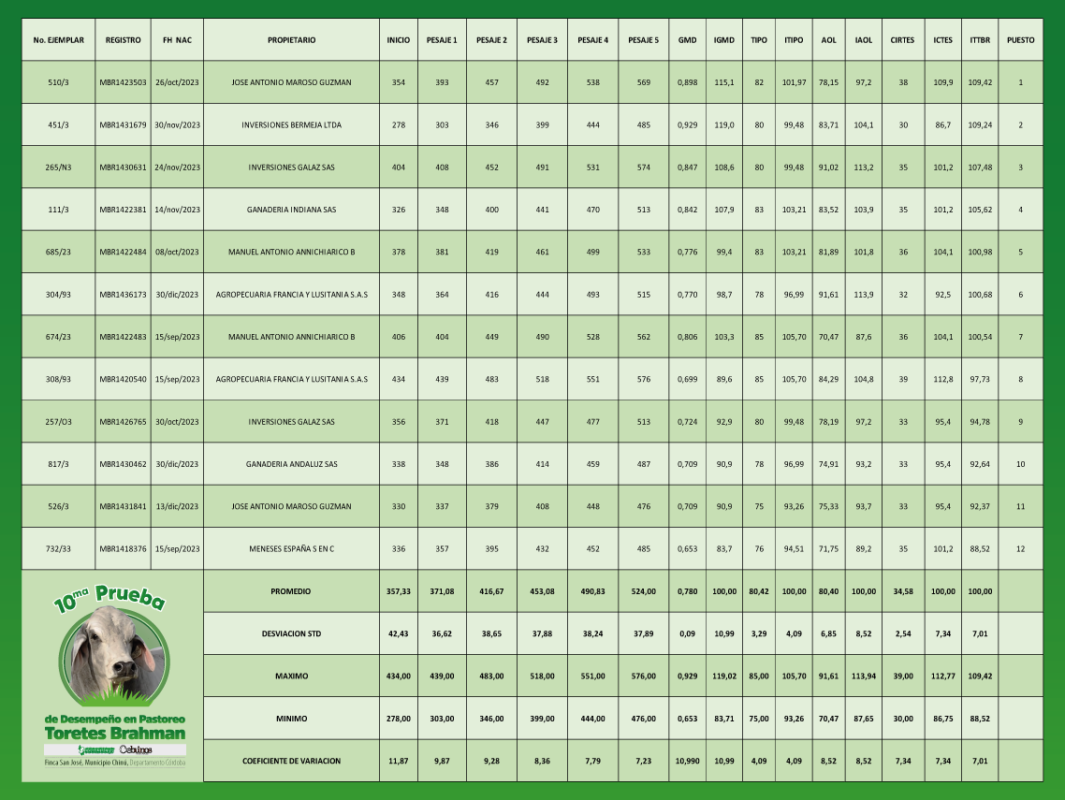 10.ª Prueba nacional de desempeño en pastoreo Toretes Brahman