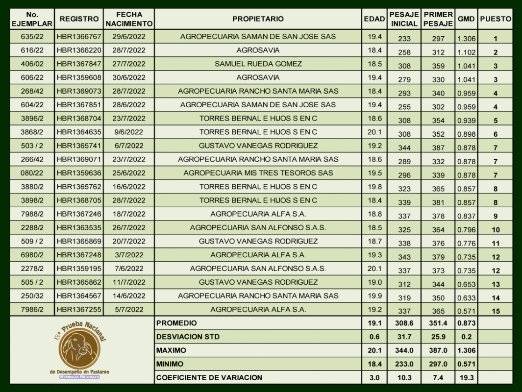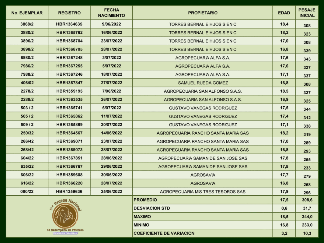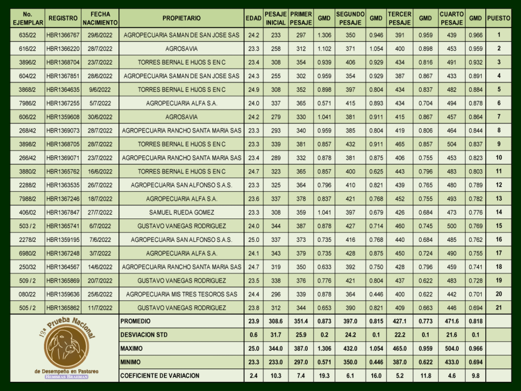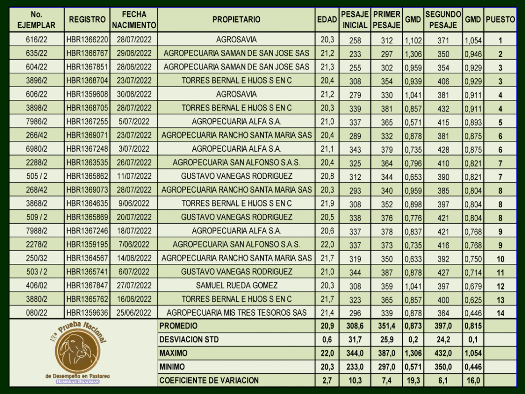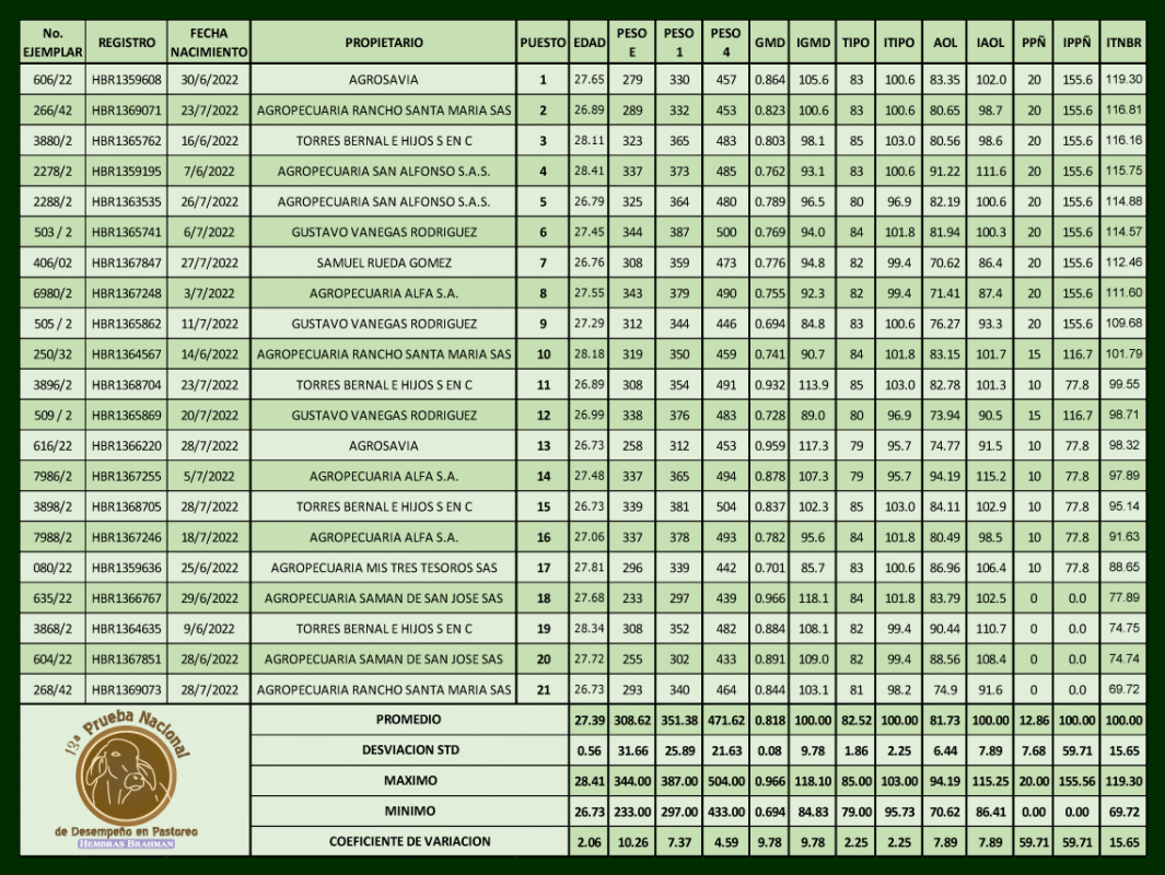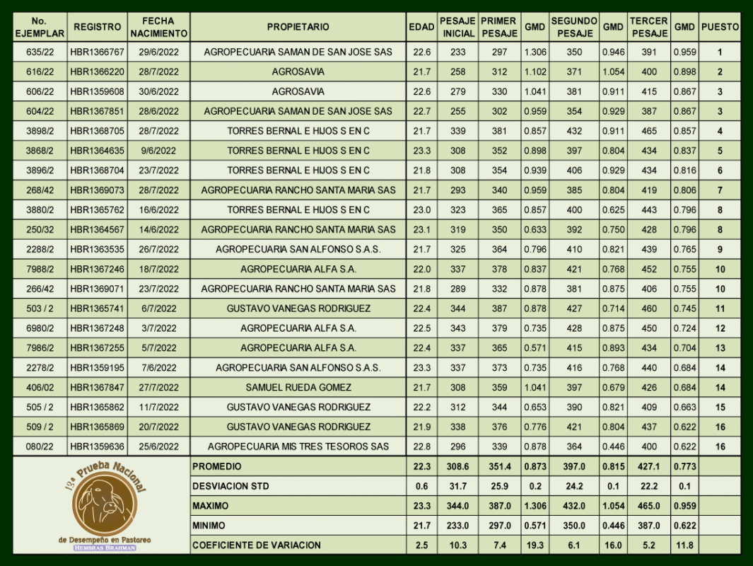 13 Prueba nacional de desempeño en pastoreo Hembras Brahman