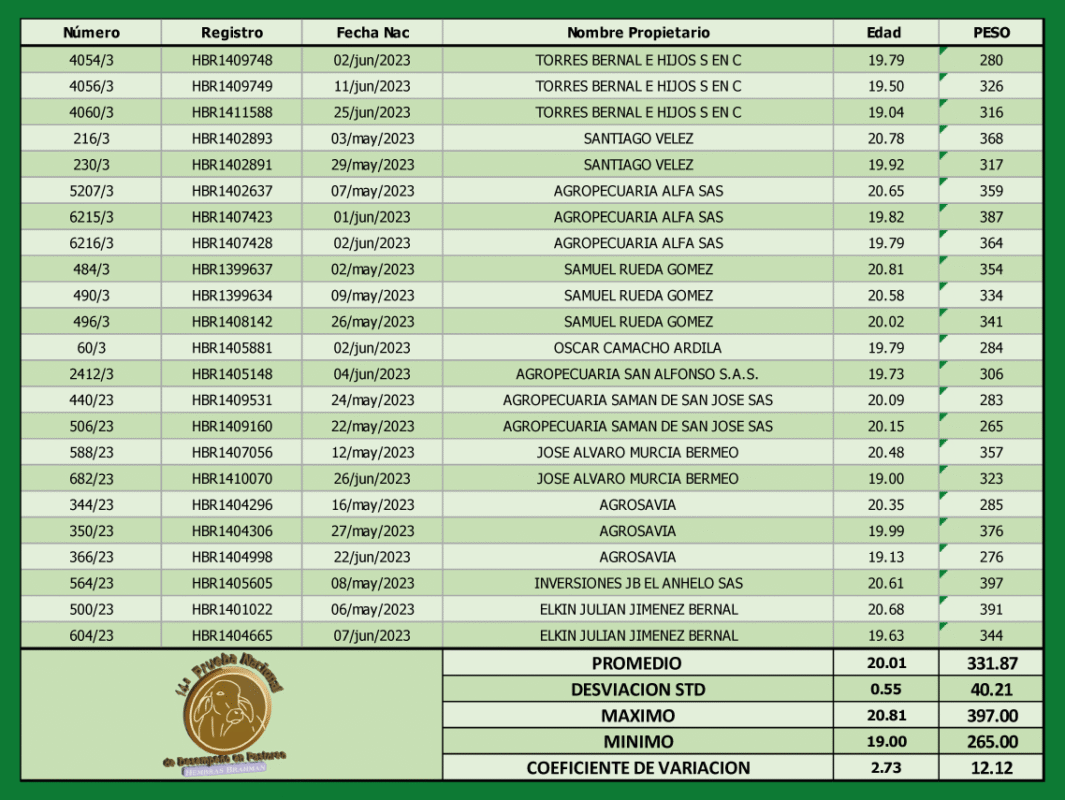 - Primer Pesaje: Viernes, 04 de abril de 2025