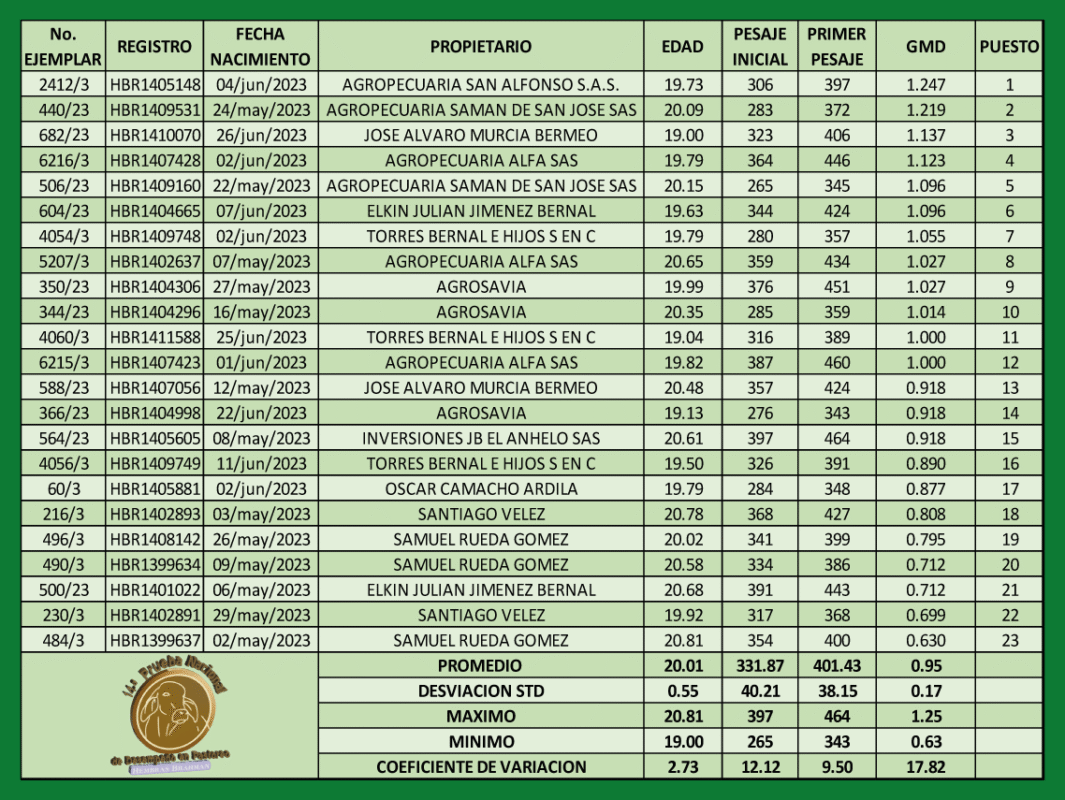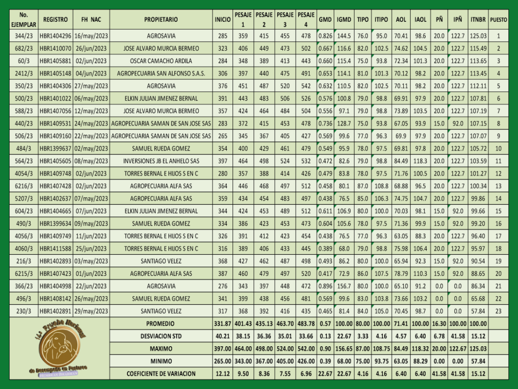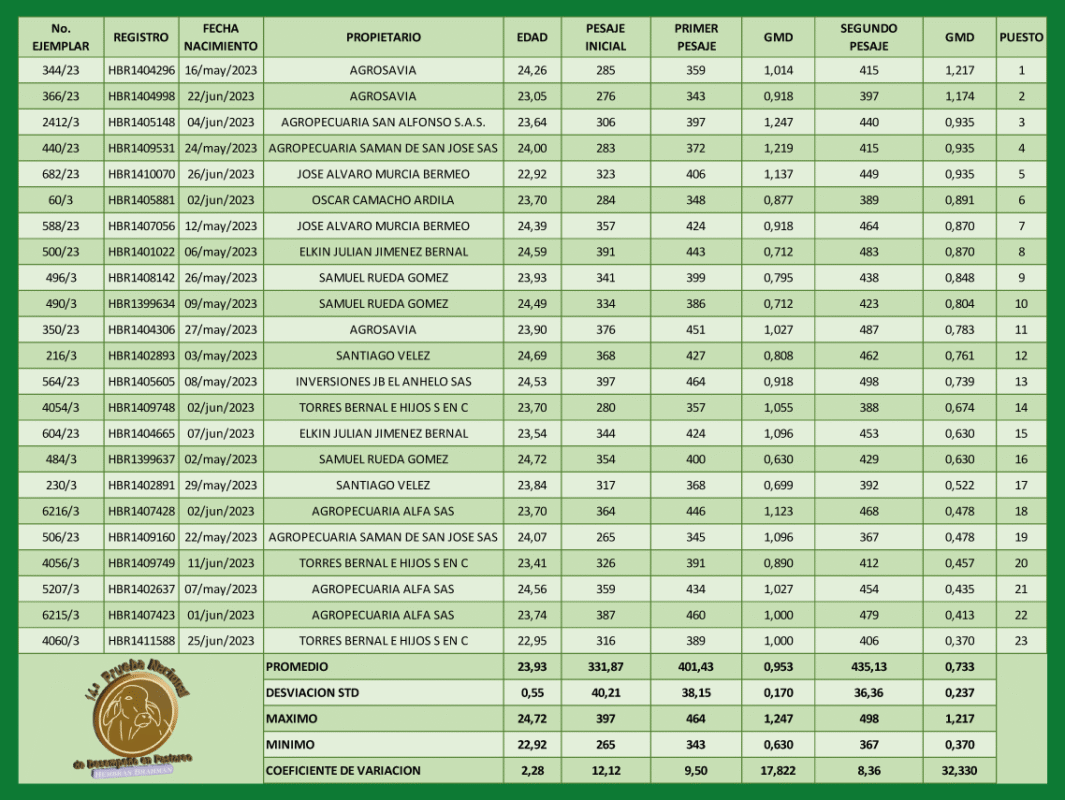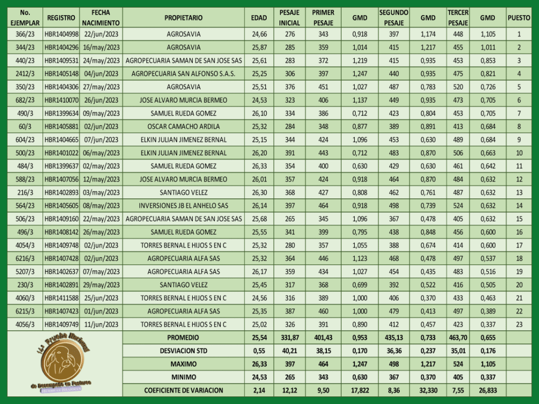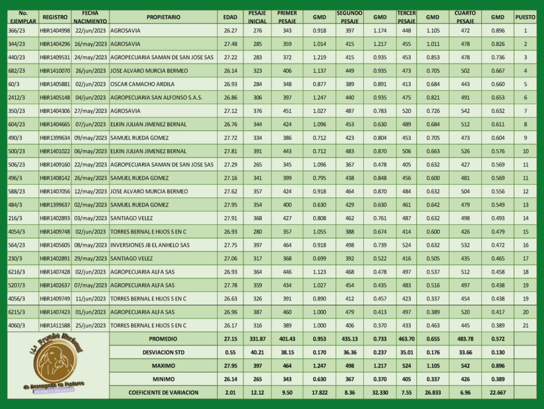 14.ª Prueba nacional de desempeño en pastoreo Hembras Brahman