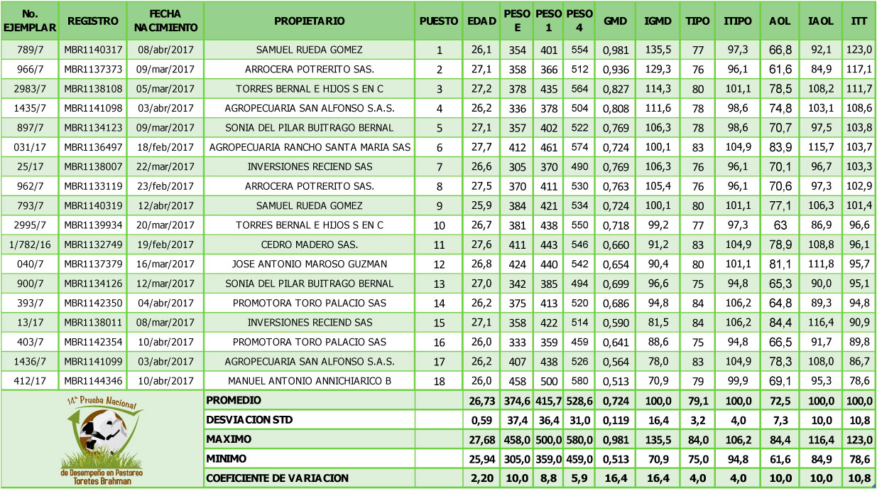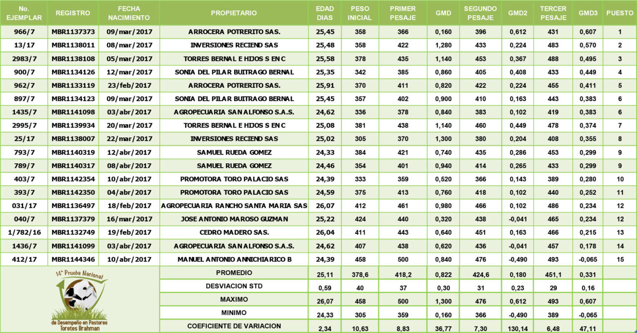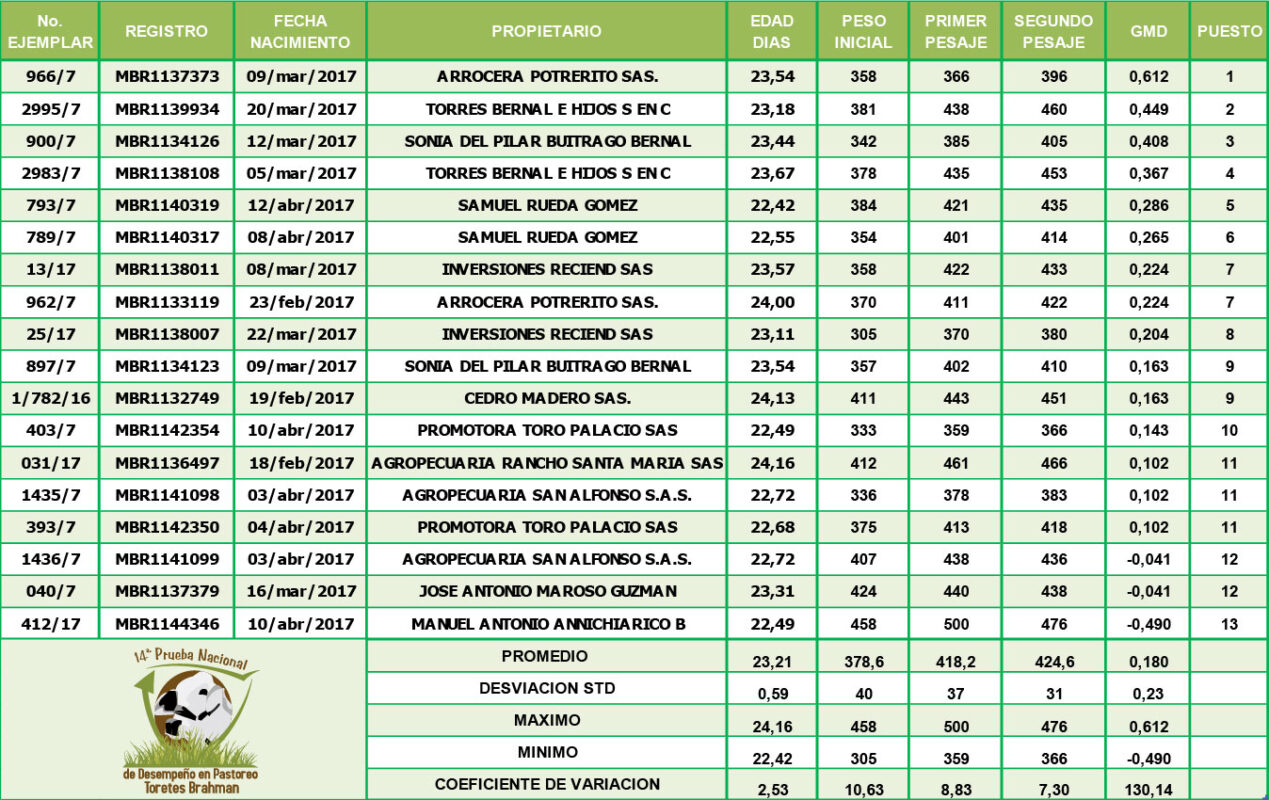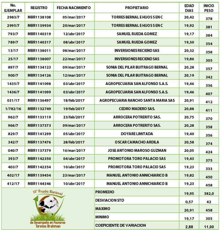 14ª Prueba Nacional de Desempeño en Pastoreo Toretes Brahman