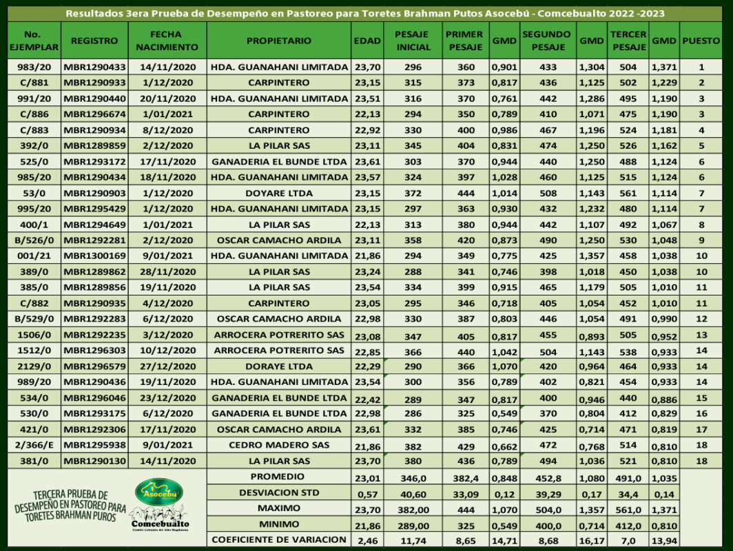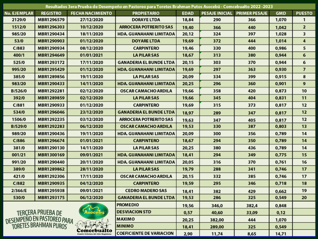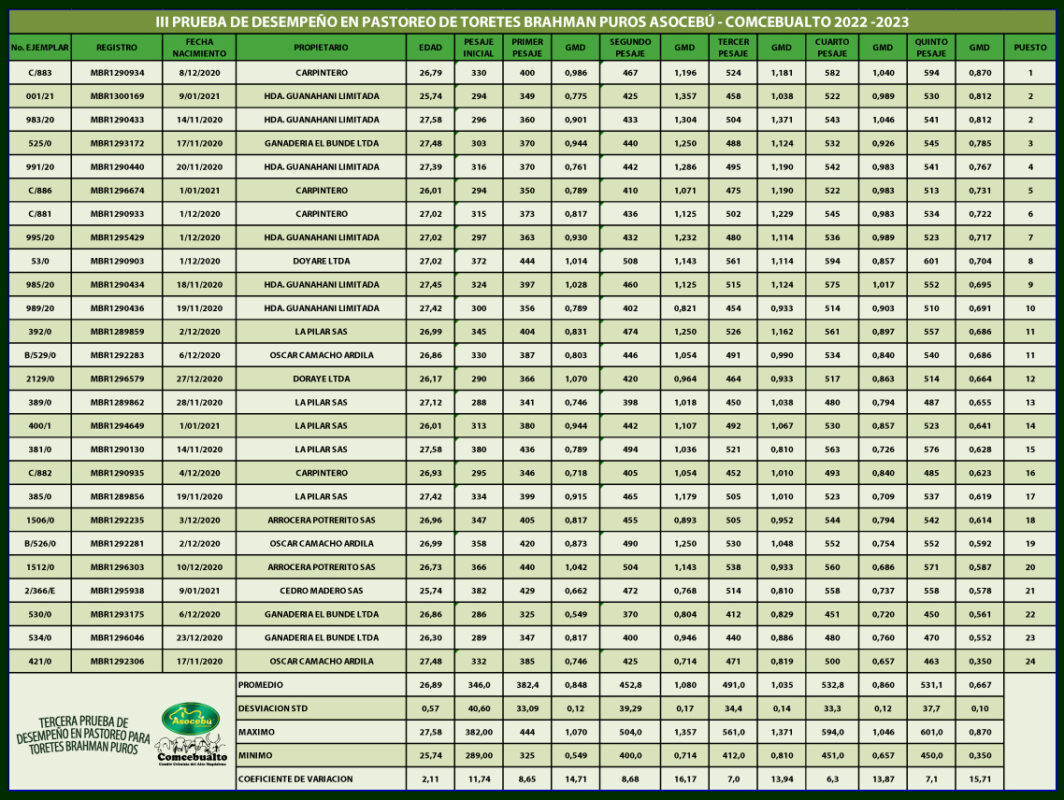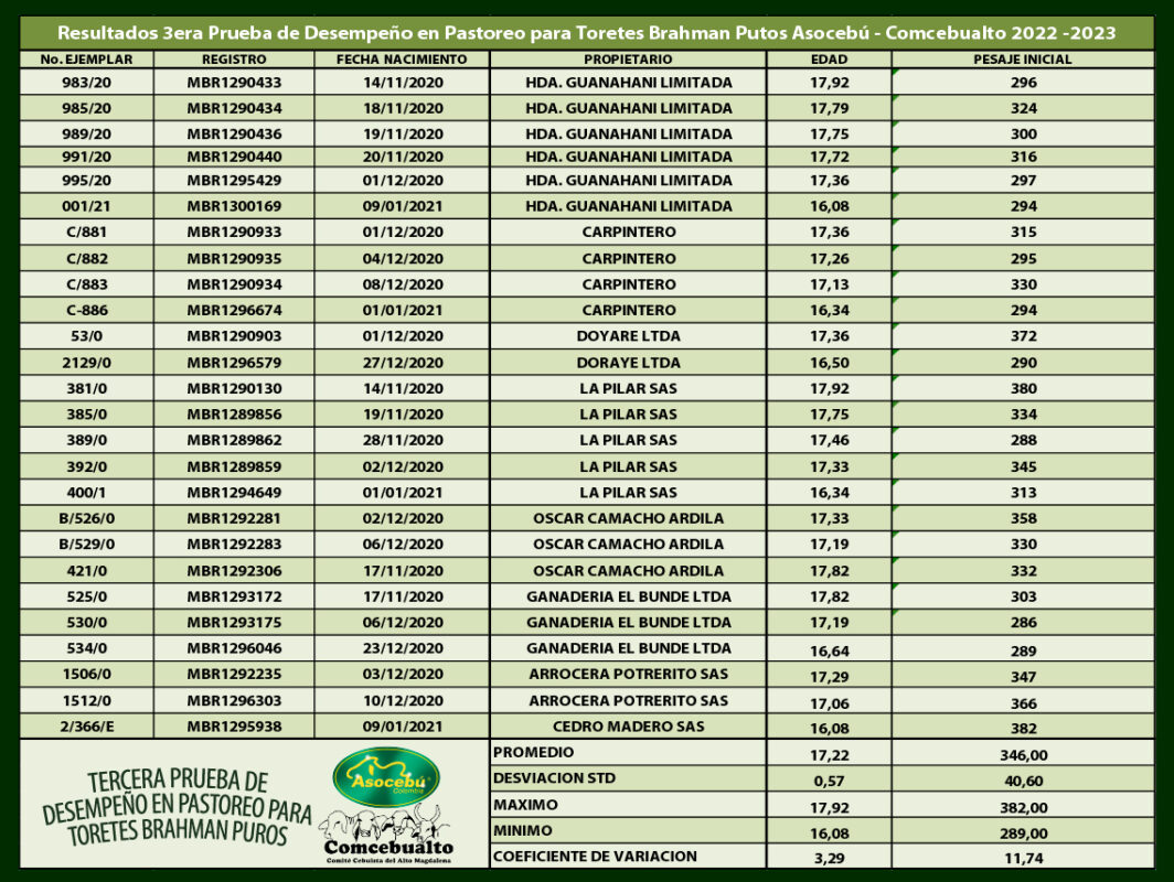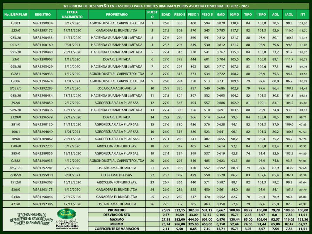 3ra Prueba de desempeño en pastoreo Toretes Brahman Puros