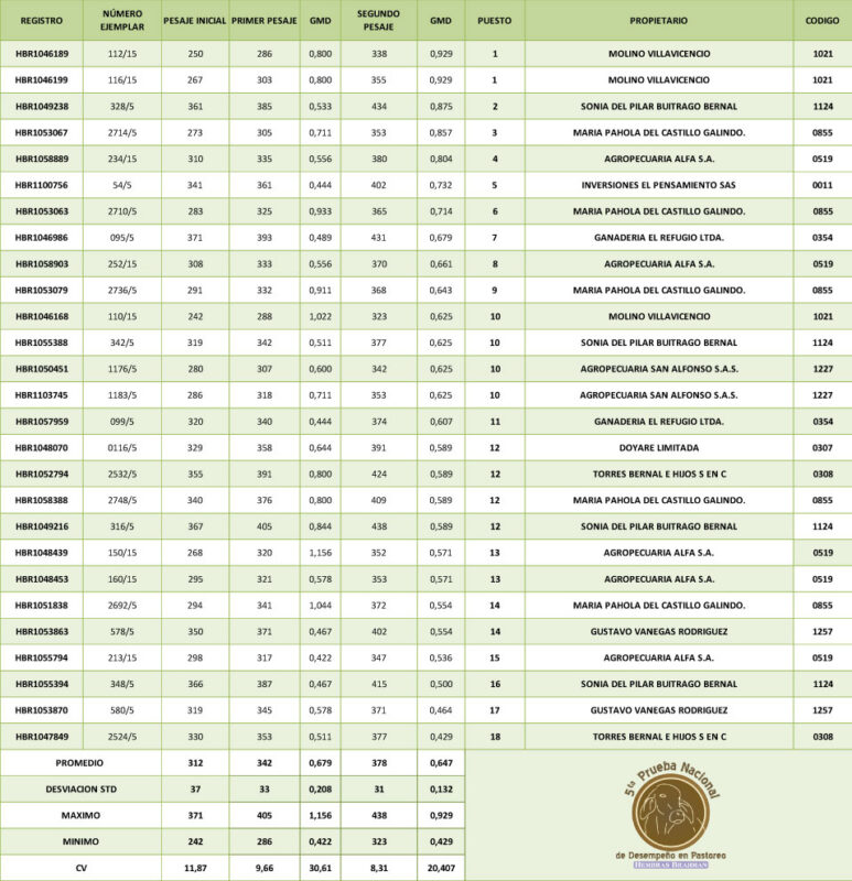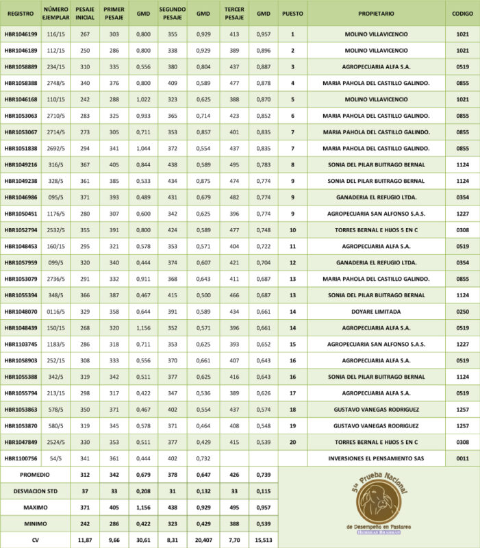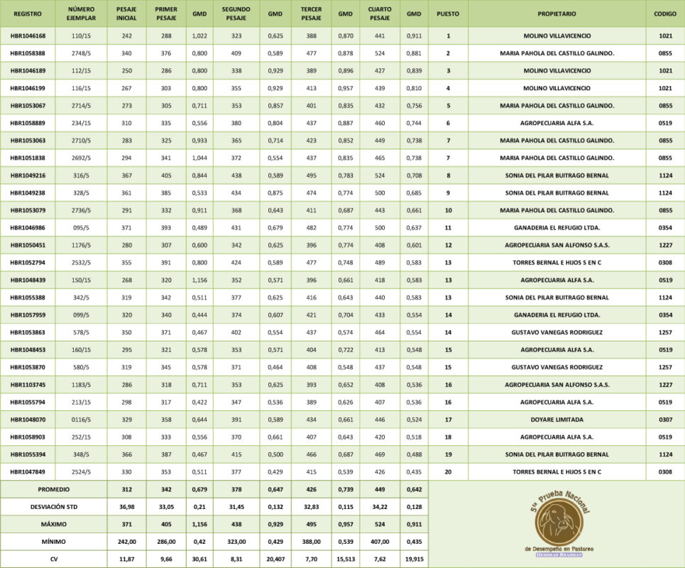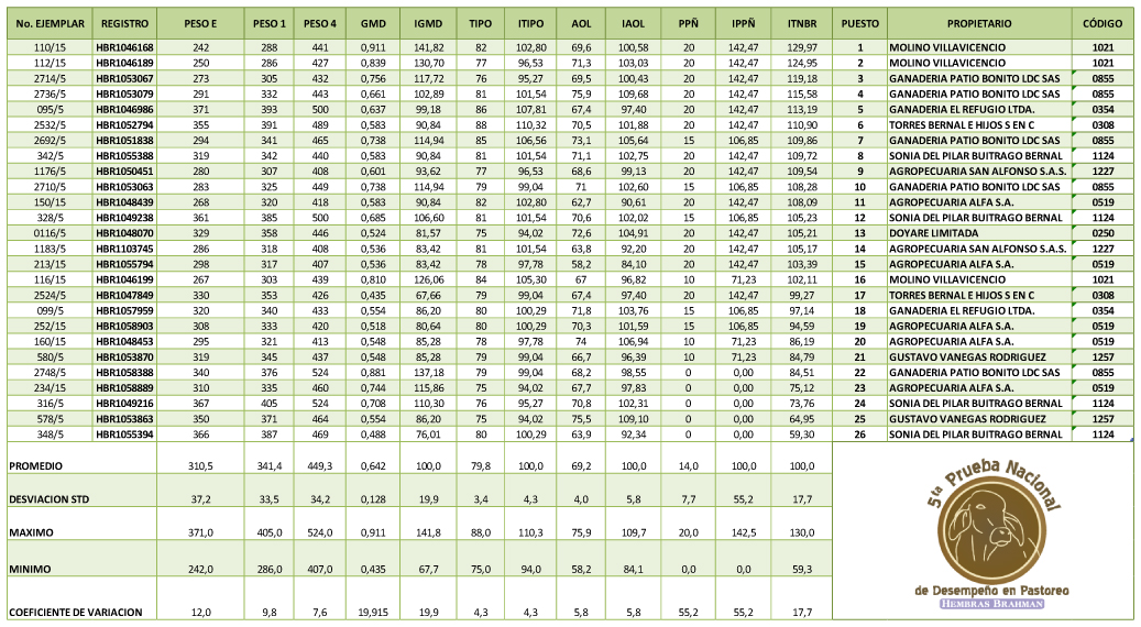 5ª Prueba Nacional de Desempeño en Pastoreo Hembras Brahman