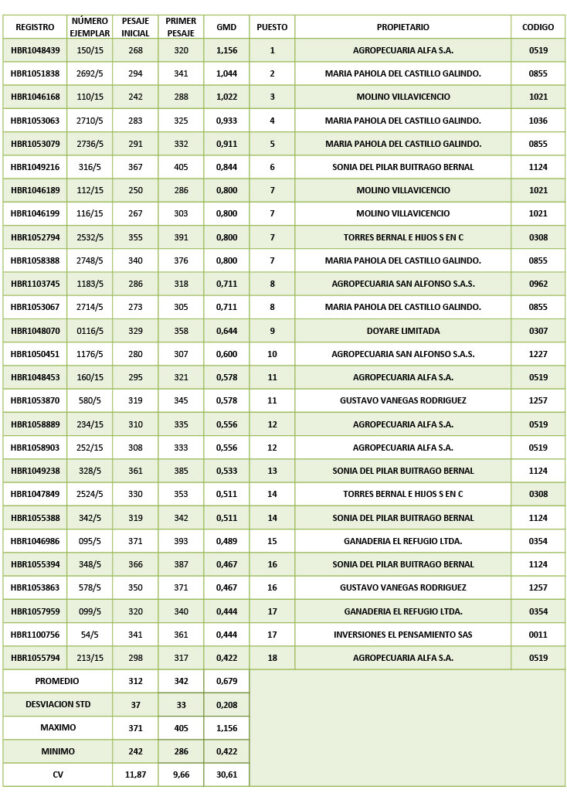 - Provenir de finca libre de tuberculosis o presentar resultados negativos a Tuberculina no mayor a 90 días a la fecha de la entrada a la prueba.