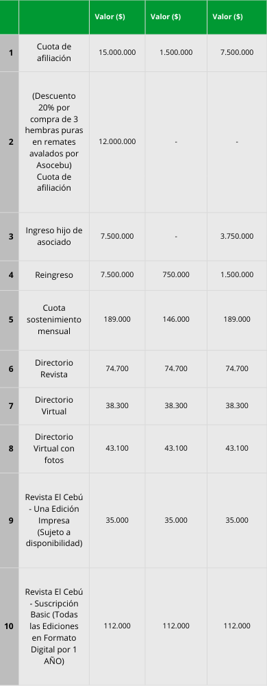 (Descuento 20% por compra de 3 hembras puras en remates avalados por Asocebu) Cuota de afiliación