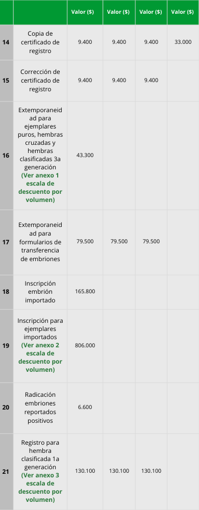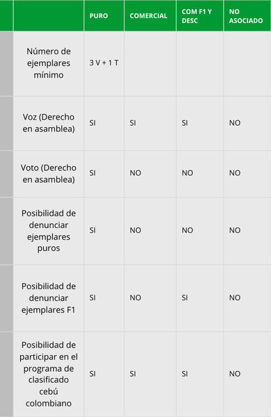 Posibilidad de participar en el programa de clasificado cebú colombiano