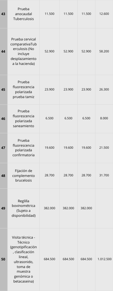 Prueba cervical comparativaTuberculosis (No incluye desplazamiento a la hacienda)