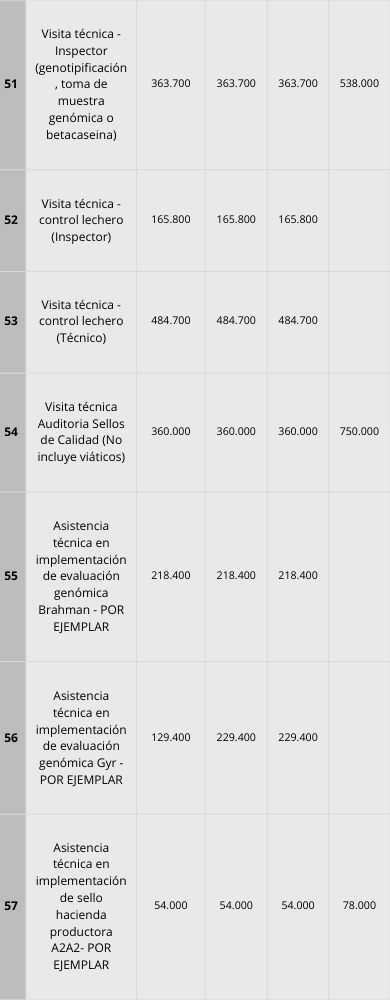 Visita técnica – Técnico (genotipificación, clasificación lineal, ultrasonido, toma de muestra genómica o betacaseina)